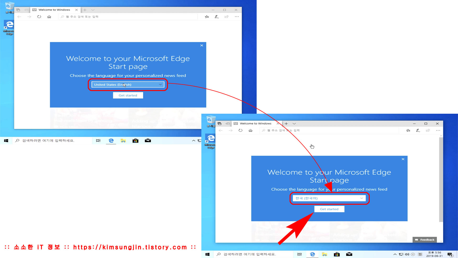23. 짜잔~~ 🤩🤩🤩🤩🤩 설치가 완료되었습니다. 보이는 Edge 브라우저에 언어를 한국어로 변경하고 "Get started"를 클릭합니다. 그럼 설정언어로된 가이드를 볼 수가있습니다. ▼